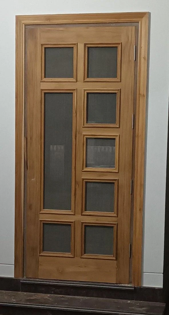 A single door made of wood with windows on either side can be a very trendy as well as functional option for a home. The door would be made up of high-quality wood, making it sturdy, durable, as well as a great addition to the functionality of the entrance, apart from its aesthetically attractive look.